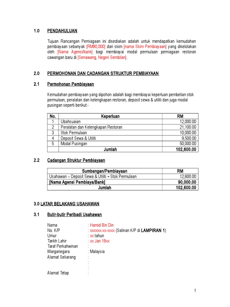 . Anda dialu-alukan untuk menggunakan kandungan ini sebagai. Rancangan Perniagaan Restoran 1. Rancangan Perniagaan January 2021 0.