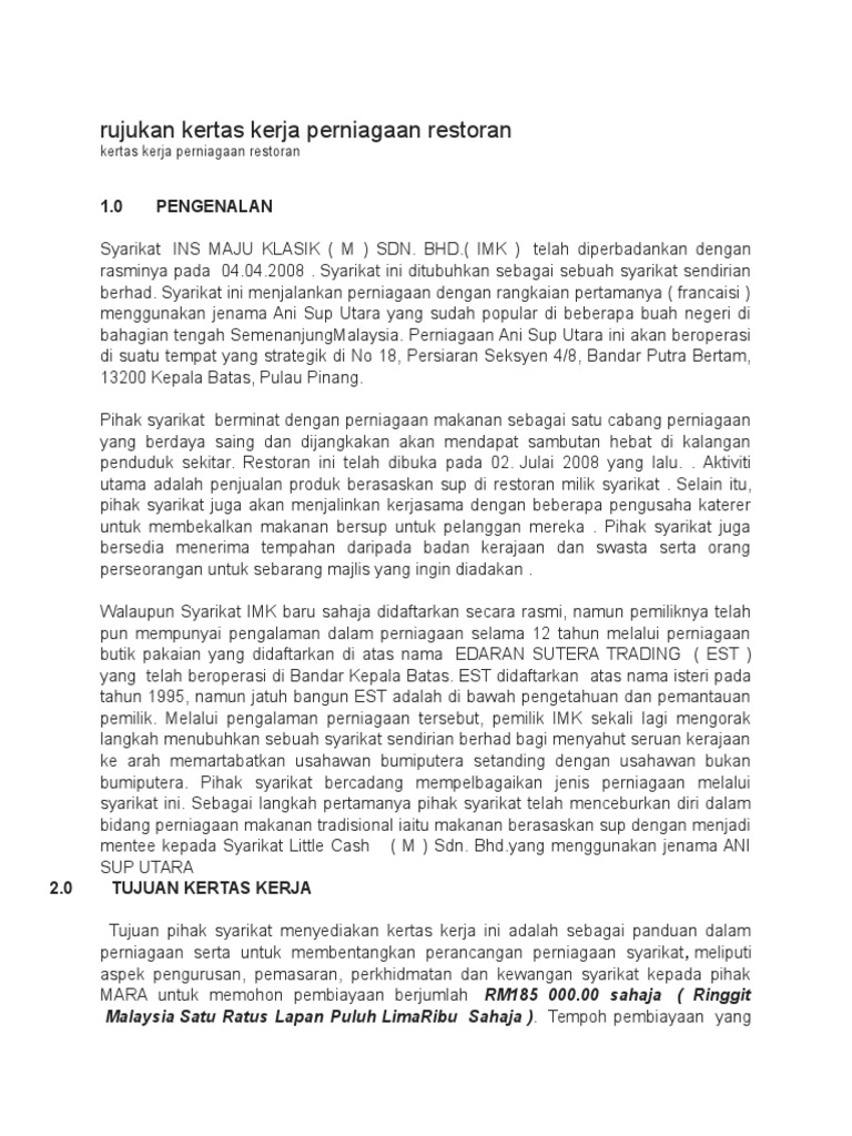 Rujukan Kertas Kerja Perniagaan Restoran Pdf